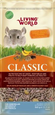 Living World Classic Chinchillas Food provides a tasty selection of the finest seeds, cereals, fruit and nuts that chinchillas would forage in the wild. While freely eating the delicious things that chinchillas love, they get everything they need for a healthy and long life. Classic contains the appropriate levels of protein, fat, fiber, vitamins and minerals to helps keep chinchillas in excellent condition. Available in 860g (1.8lbs.) bags.