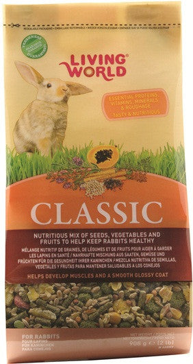Living World Classic for Rabbits is a complete, mixed-blend diet specially balanced with all the proteins, vitamins, and minerals necessary to help maintain the health of rabbits. Rich in natural protein, fiber, and vitamins, Living World Classic contains the finest blend of appetizing grains, roughage, fruits, vegetables, legumes, seeds and nuts to help meet the nutritional needs of rabbits.