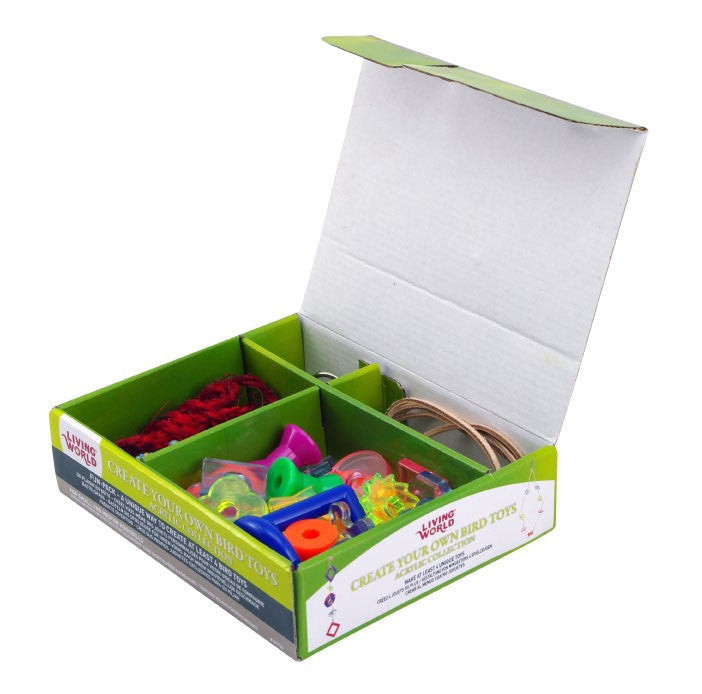 Living World Create Your Own Bird Toys is a do-it-yourself toy kit that lets you create your own bird toys. This is the perfect item for people who want to build custom-made toys specifically suited for their birds. The kit contains all you need to make at least 4 unique bird toys.