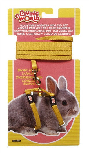 The Living World adjustable Harness and Lead Set for Dwarf Rabbits is made of safe, comfortable and durable nylon material. The color-coordinated set is custom designed to comfortably fit your Dwarf Rabbit.