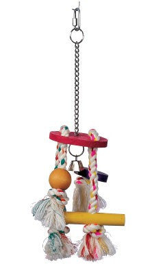 Birds will enjoy hours of fun and amusement. Each unique toy consists of a combination of interesting trinkets such as solid wood shapes, rugged rope, plastic beads, leather strips & bells. Every toy comes with a hanging clip for easy in-cage installation. Available in assorted shapes, sizes and colours.