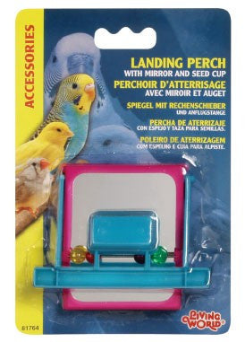 Living World® Landing Perch with Mirror, 4 Beads & Feeder is a fun and interesting visual play centre for companion birds as well as a feeding station. Birds will be intrigued and enjoy the company of their mirror image friend and also be attracted by the food in the feeder. Made of durable plastic, it is designed to withstand tough play.