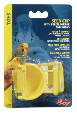 Living World Seed Cup with perch, mirror and hooks; varying colour.