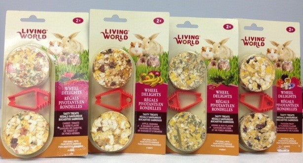 Living World Wheel Delights are tasty and nutritious treats for small animals. Highly palatable, these enticing treats contain dried or freeze-dried ingredients that come only from matured crops. The treats consist of a fine selection of ingredients, gently compressed into a healthy and crunchy format that your small critter will enjoy. No pre-cooking, baking, gluing or extrusion takes place during the making of these scrumptious delights, so that vital fibre is preserved to help support natural digestion and well-being. In addition, they do not contain other additives, binding agents, flavours, sugar, colouring or preservatives. The crispy treats also provide many other health benefits: they're an 'effective way to trim your small animal's teeth; they satisfy your small pet's constant need to gnaw; and they provide hours of challenging exercise and entertainment to help relieve boredom.