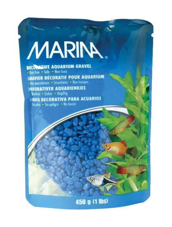 Marina Decorative Aquarium Gravel, blue; available in different sizes.