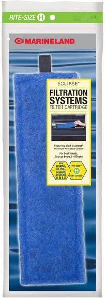 Marineland Eclipse Rite Size "H" Disposable Cartridge fits Eclipse 2 and Eclipse 3. The filter cartridge is designed to provide excellent chemical and mechanical filtration. The thick poly-fibre layer traps debris, and Marineland's premium carbon chemically filters the aquarium water. Available in a 3 pack.