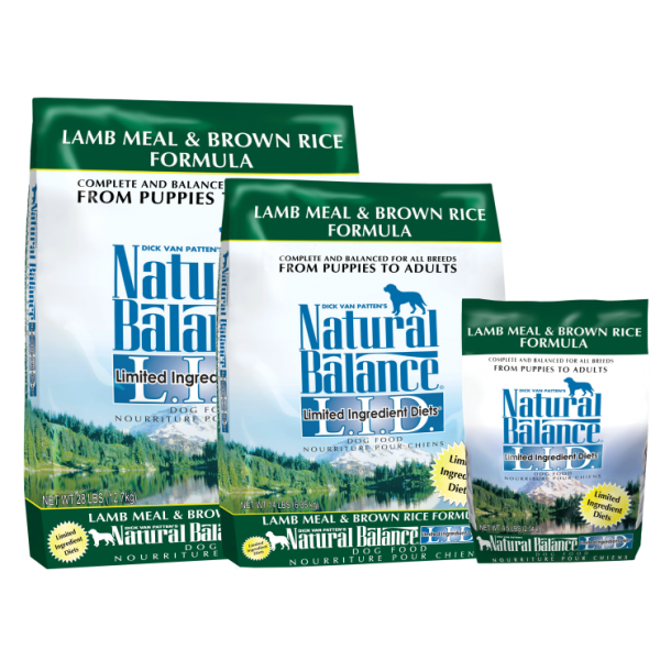 Natural Balance Dog Food, Lamb Meal & Brown Rice; available in 3 sizes.