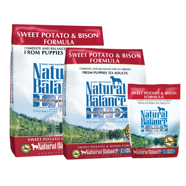 Natural Balance Dog Food, Sweet Potato & Bison; available in 3 sizes.