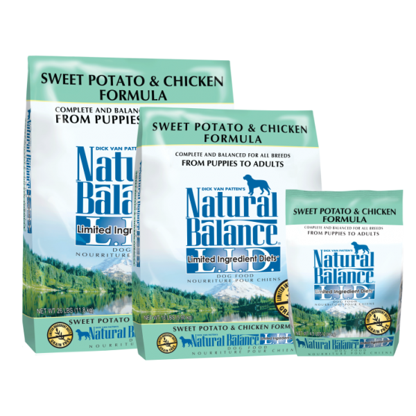 Natural Balance Dog Food, Sweet Potato & Chicken; available in 3 sizes.