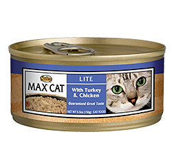 Unique flavor combinations made with natural ingredients makes MAX CAT Food the cat’s meow. MAX CAT Lite with Turkey and Chicken is made with your cat’s health goals in mind. With 15% fewer calories than MAX CAT Adult Chicken & Lamb, your cat can maintain their weight-loss goals without compromising taste.