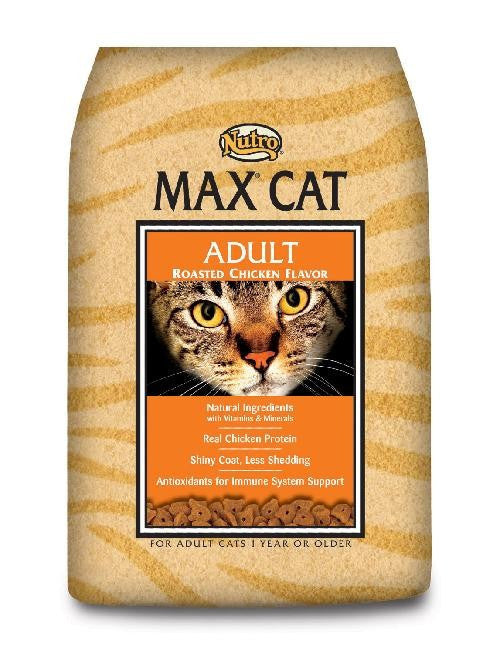 MAX® CAT Roasted Chicken Flavor Natural Dry Cat Food is made with select ingredients and the vitamins and minerals your cat needs for its health and wellness. With the taste of real chicken, your adult cat will find MAX® CAT Products irresistible! MAX CAT foods provide rich sources of omega-6 and omega-3 fatty acids to help provide for a rich, glossy coat and supple skin.