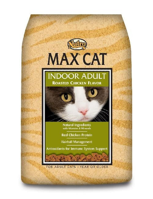 MAX® CAT Natural Indoor Cat Foods are made with select ingredients and the vitamins and minerals your cat needs for health and wellness. With the taste of real chicken, your indoor cat will find MAX CAT foods irresistible! MAX® CAT Dry Cat Foods provide rich sources of omega-6 and omega-3 fatty acids to help provide for a rich, glossy coat and supple skin.