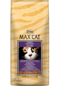 MAX® CAT Products are made with select ingredients and the vitamins and minerals your cat needs for health and wellness. MAX® CAT Senior Roasted Chicken Flavor cat food is specially formulated with senior cats in mind. Our natural senior cat foods are made with real chicken and other natural ingredients your cat loves for a price you adore.